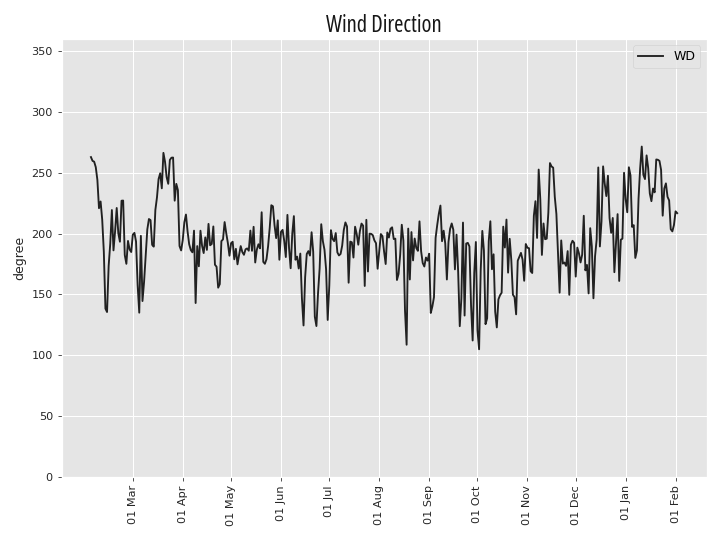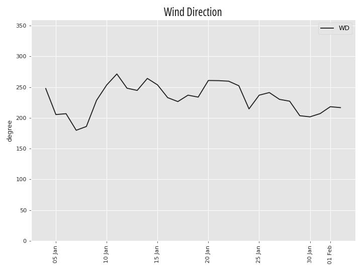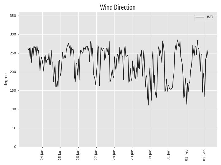 | Temperature | Humidity | Precipitation | Wind Speed | Wind Direction |